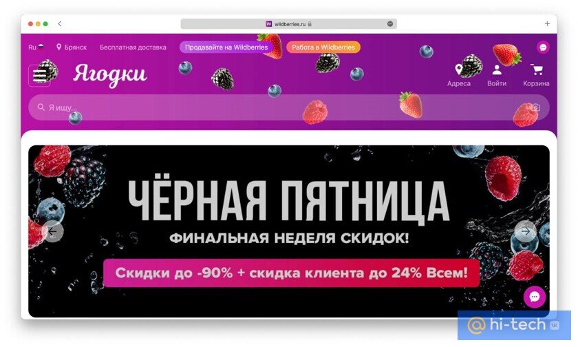 Wildberries сменил название своего интернет-магазина на русскоязычную версию «Ягодки». Новый логотип уже можно заметить на сайте компании. Дословно Wildberries с английского переводится «дикие ягоды». Теперь маркетплейс решил стать более «русифицированным» и сменить свое название. При этом в дизайне сайта появились разные виды ягод. Любопытно, но адрес сайта никак не изменился. Также не изменился логотип в социальных сетях, в фирменном приложении и на других платформах. Скорее всего, «Ягодки» — временное название для акции «Черная пятница», которую компания проводит на этой неделе. Почему Wildberries выбрал именно эти даты, неизвестно. Международная «Черная пятница» стартует только 23 ноября. В интервью с РИА Новости Wildberries сказала, что не исключает в будущем смену названия на «Ягодки». Напомним, Wildberries — международный интернет-магазин одежды, электроники, косметики и других товаров. Сеть основана в России. У компании около 95 тысяч пунктов выдачи заказов и 11,5 миллионов пок