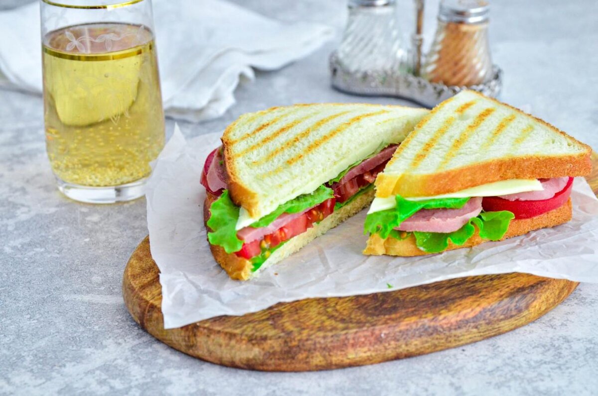 Нужно поджарить хлеб до корочки, 2 кусочка. Нарезать помидор, взять отрезать кусочек сыра. После того как хлеб под золотится Надо его намазать маеназам, накрыть помидором и сверху сыром , положить верхнию булку и все бутер готов