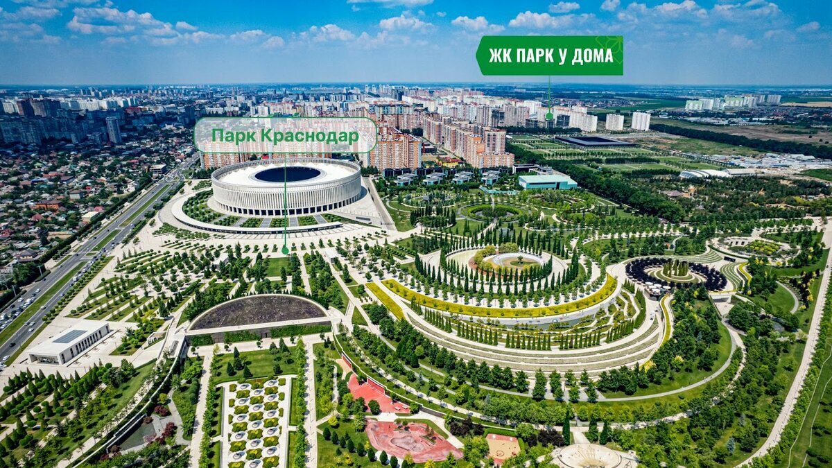 Название не обманывает, и парк действительно находится прямо у дома. И не какой-нибудь, а знаменитый «Краснодар», который считается одним из самых красивых в мире. Это не просто слова – он был признан лучшим в престижной международной премии Urban Parks Awards. В любой момент можно выйти на прогулку или пробежку, а еще – сходить на футбол, ведь на обширной территории расположен современный стадион.