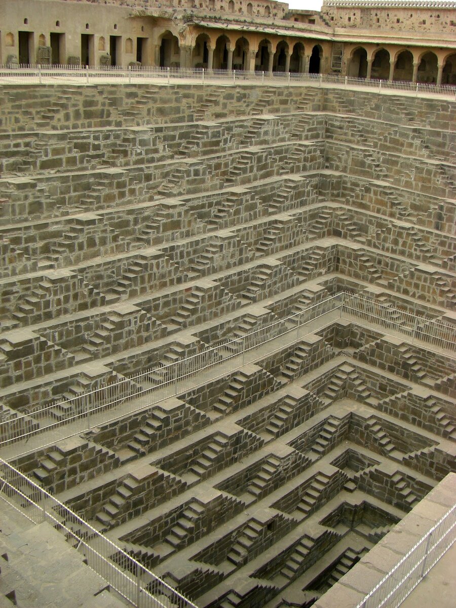 В древних писаниях упоминается строительство как колодцев, так и каналов, резервуаров, плотин. Все они были объединены в одном проекте Чанд Баори, который был направлен на максимальное накопление воды. Строили такие колодцы поэтапно. Сначала вырывали яму-скважину квадратной, треугольной или круглой формы, которые по мере углубления пропорционально сужались. Каждый уровень укрепляли Колодец наполнялся прямо до краёв во время сезонов дождей, но со временем вода кончалась. Для доступа к нижним уровням, внутреннюю часть отделывали ступеньками, чтобы люди имели возможность спускаться вниз. Чанд Баори на столько огромный, что имеет порядка 3,5тыс ступеней. На 13 уровнях также имеются крытые небольшие павильоны, чтобы водоносам раньше и туристам сейчас можно было отдохнуть от палящих лучей Солнца. На дне сооружения температура держится в районе 5-6 градусов по Цельсию. Это один из немногих древних архитектурных памятников, которое строилось не вверх, а вниз. Это место также послужило местом для съёмок множества фильмов, среди которых можно выделить Тёмного рыцаря Кристофера Нолана с Кристианом Бейлом в роли Бэтмена.