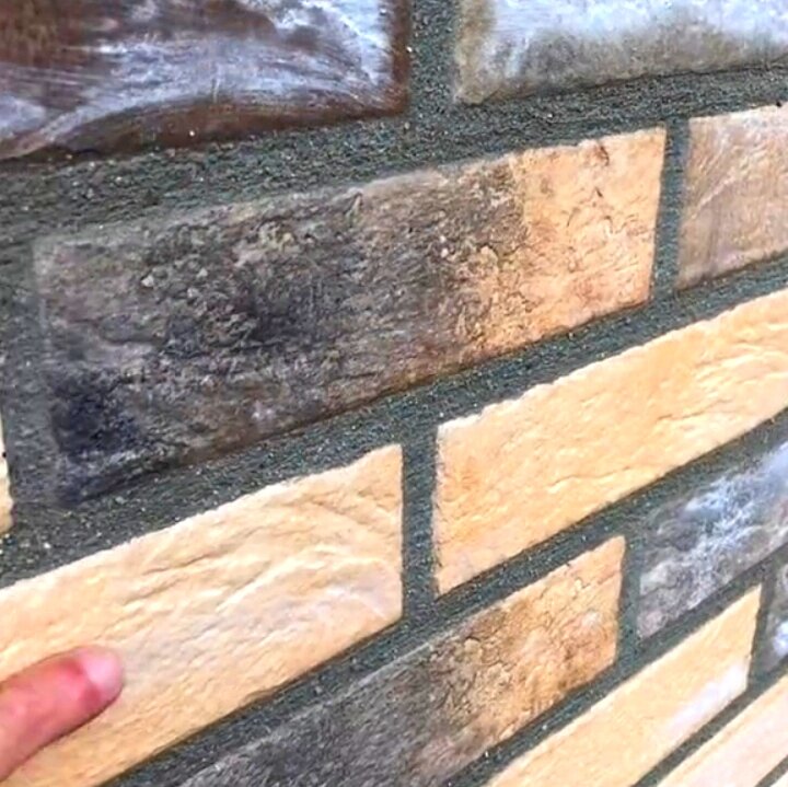 Фасадная клинкерная плитка и как мы её клеим. Важно! Тут есть важный момент чтобы потом по итогу не было вот такого вот "высова" Вот это фуга(раствор так называется). Клинкерный камень мы клеим на вот такой вот раствор . У нас сопровский .Я не знаю у вас есть он или нет. Важно! Дорогой мешок.стоит 930 руб, но по итогу плюс этого раствора в том что он не даст при высыхании и намокании так называемого "высова", а именно белых потеков солей на вашем фассаде, смотрится крайне не красиво и это портит вид фассада, а стереть соль получается крайне тяжело! Если вы обращали внимание есть на некоторых кладках такая вещь.Вот течёт прямо ,соль вылазит. Если плитка гладкая,то её можно закидывать сухим раствором, то есть не замазывать, ну а если фактурная то уже либо жидким либо полусухим. Далее мы просто вытираем с плитки остатки раствора, а в конце промоем губкой. Ну вот и всё друзья мои) ещё один полезный совет для будущих идей! Подпишись если было полезно) всем добра!
