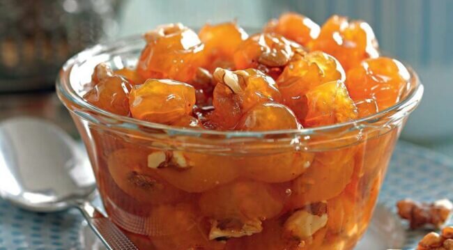 Здравствуйте, дорогие друзья! С вами Надежда! Варенье царское - так называли варенье из крыжовника с грецкими орехами. Его очень любила императрица Екатерина II или Великая. За это варенье она подарила кухарке изумрудное кольцо, после чего варенье стали называть изумрудное. Рецепт варенья очень простой и ингредиентов понадобится немного, но получается вкусно и полезно, потому что оно содержит много полезных элементов, которые укрепляют иммунитет и питают организм. Чем полезно варенье царское Варенье из крыжовника и грецких орехов Вам понадобятся: Готовим: Хорошего чаепития! Варенье из крыжовника, начиненного орехами Продукты: Готовим: Приятного чаепития! Попробуйте варенье из крыжовника с апельсином и лимоном. Еще больше информации читайте на моем блоге по ссылке: