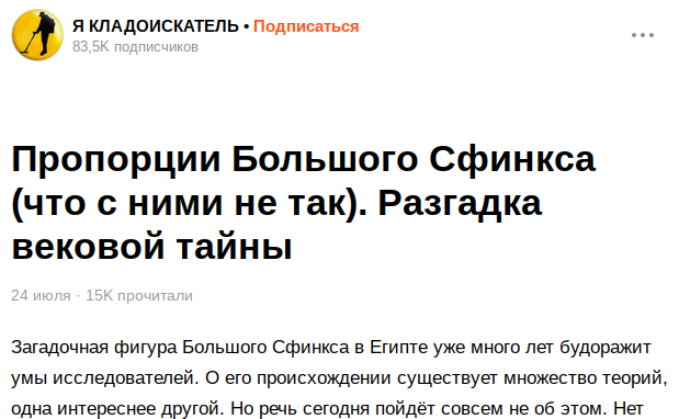 Тема Великого Сфинкса с плато Гизы уже поднималась на моём канале. Там участник доски позора нетрадиционной псевдо-истории пробовал найти некие подсфинскные залы с собранием знаний об Атлантиде.