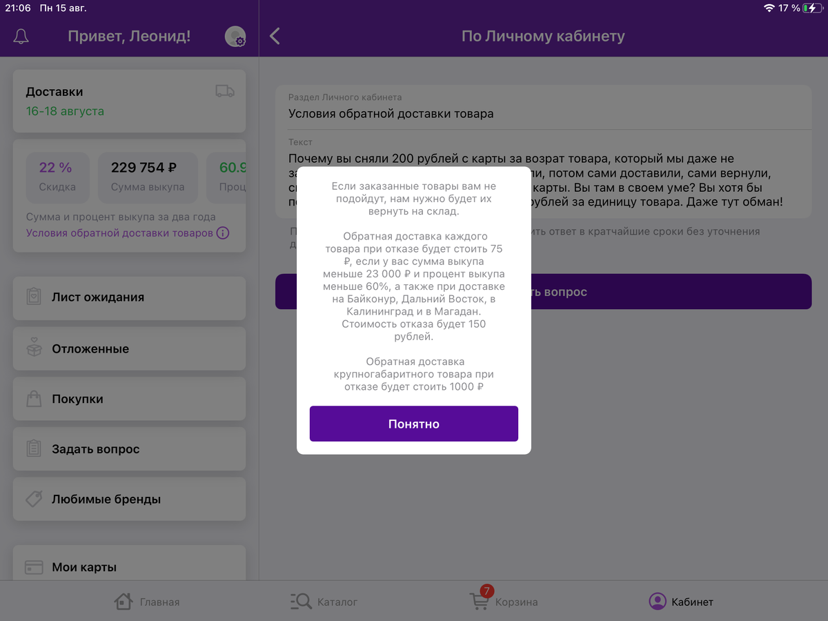 Мне за возврат увеличили процент скидки аж на 4%😂. А утром он был даже не 22, а 24%, но к вечеру, видимо, передумали))