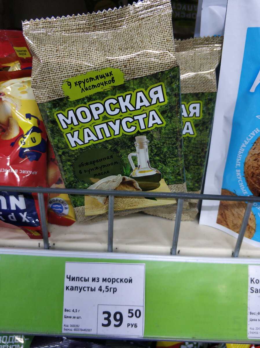 Приветствую, уважаемые! Я часто покупаю морскую капусту. Многие говорят, что очень полезная вещь, но мне нравится вкус. С тех пор, как меня подсадили на роллы, я обожаю этот продукт. Дома тоже частенько заворачиваю простейшие рис, огурец, один квадратик морской капусты и вместо ужина или обеда даже в выходной, когда лень что-то существенное готовить. Но я эти листочки морской капусты так люблю, что иногда и просто заворачиваю их отдельно в трубочку, обмакиваю соевым соусом и ем. Только соус для этого разбавляю, чтоб слишком много соли не потреблять. Увидела вот в упаковках маленьких морскую капусту в магазине Фикс Прайс и решила, что точно надо попробовать. Она продается среди чипсов, снеков... Стоит-то всего 40 рублей округленно! Но внутри всего 9 хрустящих листочков, но обжаренные в кунжутном масле. Если почитаете на обороте упаковки: Сушеная пищевая рыбная продукция. Состав: В общем, что они смешивают кунжутное с рапсовым вперед не вывели, конечно... А кунжутное - просто в трен