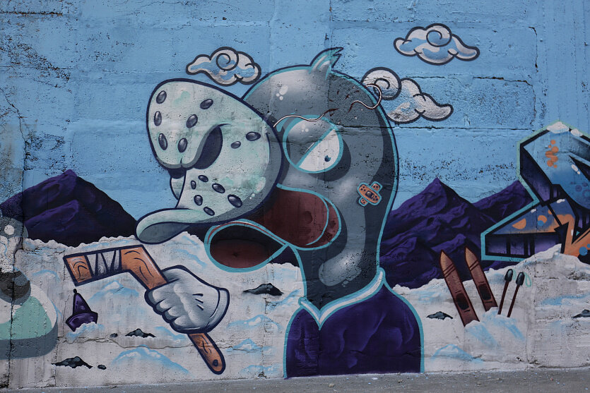 Огромные новогодние граффити рисуют на улице Военной в Новосибирске