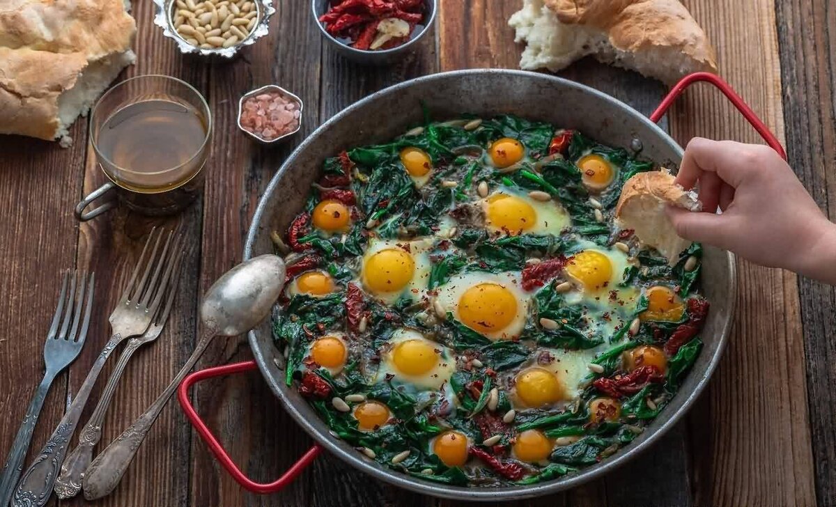 Гренки со шпинатом и фетой