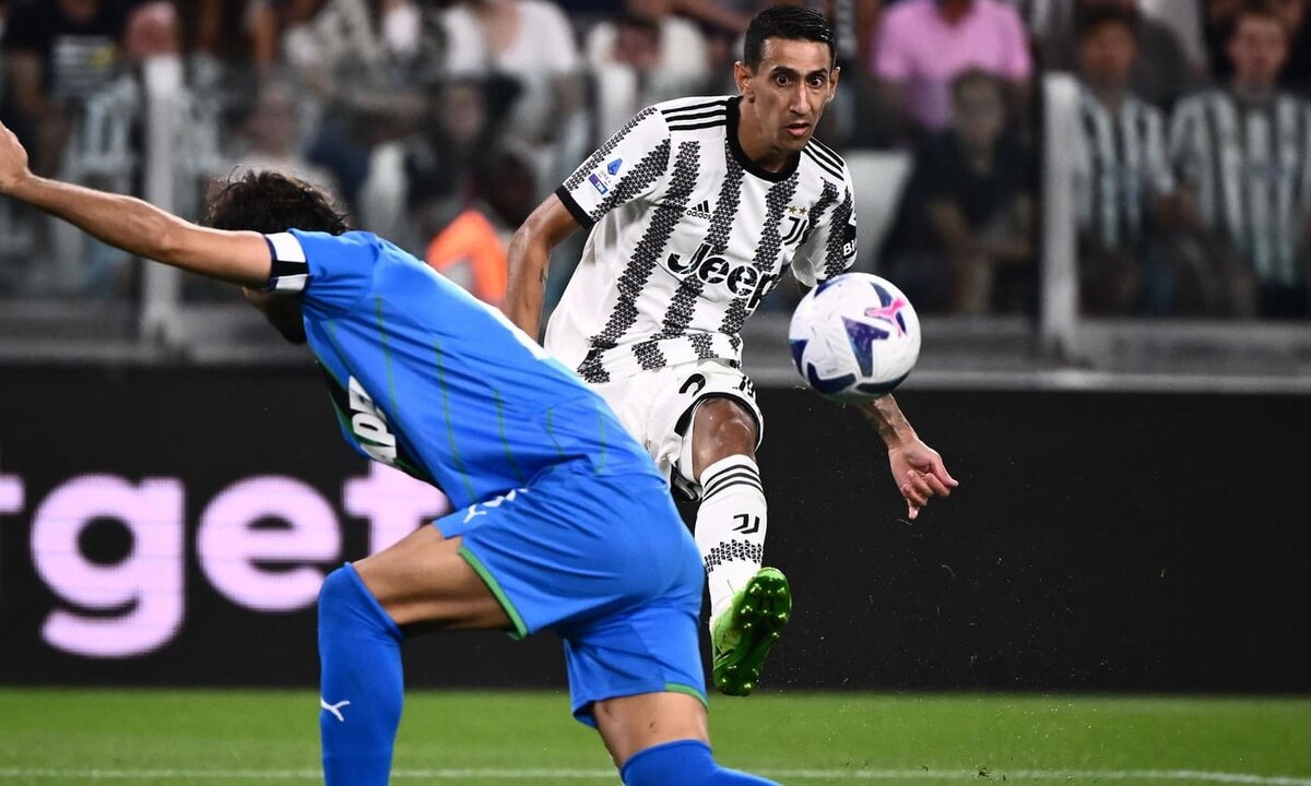 Вопреки ожиданиям Аллегри решил использовать Ди Марию с первых минут не в качестве чистого вингера, а ближе к Влаховичу, в том числе и без мяча. Особенно отчетливо это наблюдалось при розыгрышах гостей от ворот. Куадрадо действовал справа, а Ди Мария составлял пару форварду в первой линии прессинга. Именно аргентинец поддавливал голкипера "Сассуоло" при розыгрыше. Впрочем, прессинг туринцев был достаточно эпизодическим явлением, и это в том числе иллюстрируют 24 владения гостей с 10+ передачами (против 14 у "Юве").