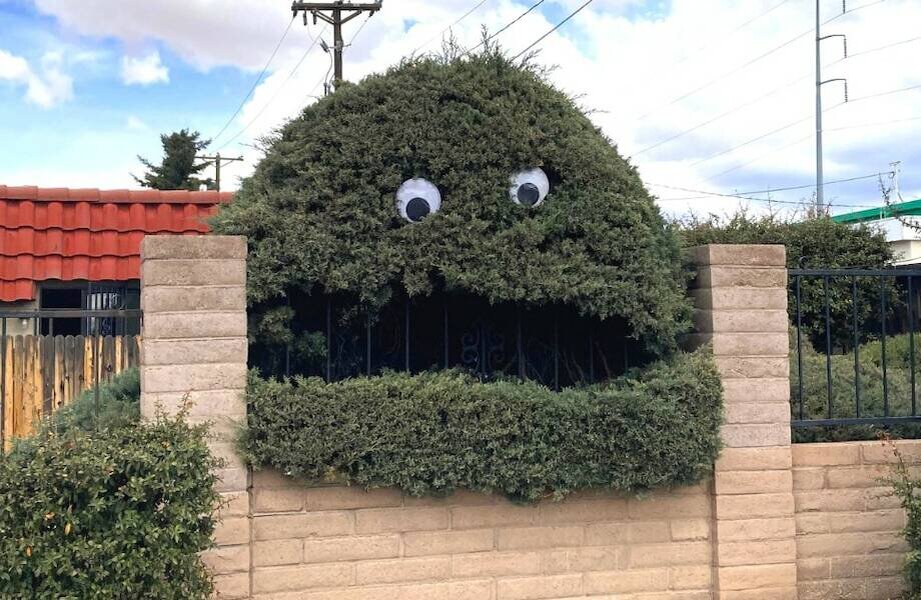 Гигантский глаз, Годзилла, надувной кит и другие дизайнерские решения, которые превратили обычный дом в уникальный. Каким вы видите дом вашей мечты? Для некоторых людей главное, чтобы дом был уютным. Другие же большое количество внимания уделяют его внешнему виду. Для тех, кто относится ко второму типу людей, важно, чтобы дом был не просто привлекательным, им важно, чтобы он выделялся. Предлагаем вашему вниманию 10 фотографий о том, с помощью каких элементов декора можно сделать дом достопримечательностью улицы. Представьте, как вы идете ночью мимо этого двора и замечаете такой огромный глаз. Какими будут ваши действия? Скелеты решили забраться друг другу на плечи, чтобы косить траву было веселее. А существует ли такой двор, в который не вписался бы гигантский Годзилла? Если вы настоящий фанат этого персонажа, то у вас получится найти для него место в любом дворе. Порой и обычная пальма может стать визитной карточкой ландшафтного дизайна. Если у садовника руки растут из нужного места,