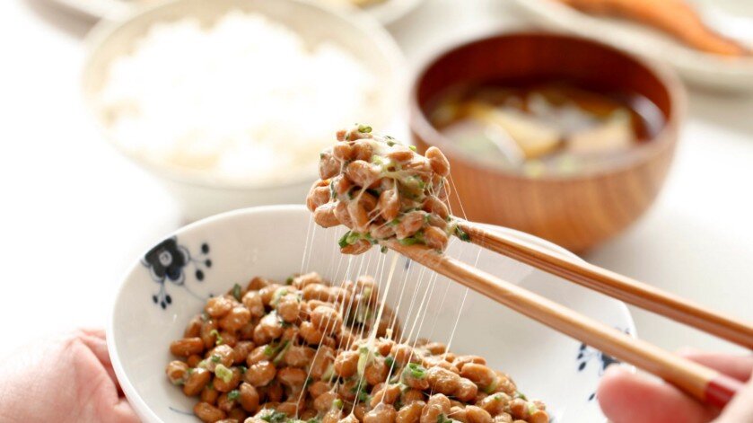 - МК-7 содержится в ферментированных продуктах, таких как натто (ферментированные соевые бобы). Он также вырабатывается некоторыми бактериями при переваривании клетчатки.