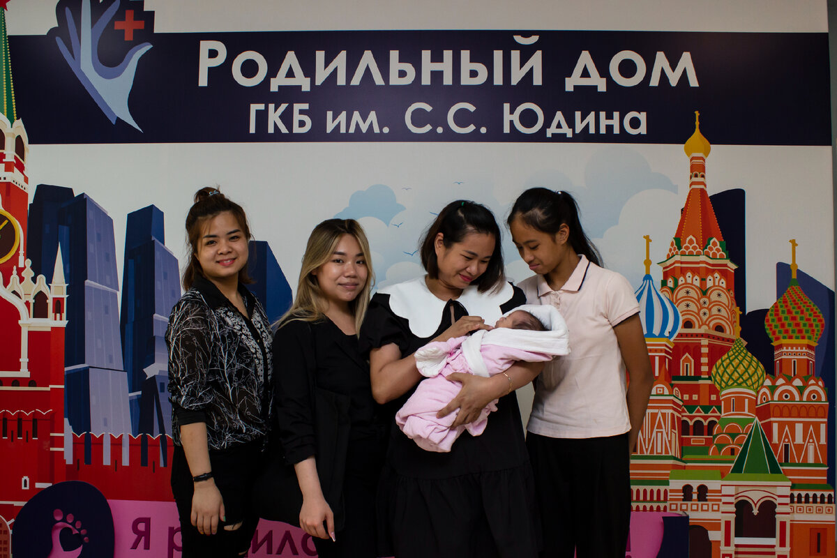 Команда врачей ГКБ им. С.С. Юдина помогла пациентке из Вьетнама успешно родить тройню и выходила малышей, рожденных раньше срока. Большая семья приехала в перинатальный центр на выписку малышки из тройни, которой по состоянию здоровья пришлось задержаться в стационаре. 12 мая в приемное отделение роддома ГКБ им. С.С. Юдина поступила гражданка Вьетнамской Республики Нгуен Тхюи Нинь. Женщина находилась на 31-32 неделе беременности. Она могла изъясняться только на вьетнамском языке, но имела при себе медицинскую карту из женского центра. По данным документов беременность тройней протекала с осложнениями: угроза прерывания беременности, токсикоз беременных, гестационный сахарный диабет. Из-за угрозы преждевременных родов она была госпитализирована в отделение патологии беременности. "Беременность тройней составляет около 1% всех беременностей и всегда сопряжена с высокими перинатальными рисками. В случае пациентки наблюдался самый благоприятный тип многоплодной беременности - трихориальну