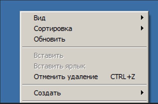 Чтобы выполнить подобную процедуру, правой клавишей манипулятора щелкните на месте рабочего стола, которое незанято ярлыками и каталогами.