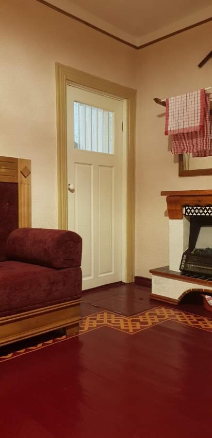 Почтой на Рождество нам с дочкой пришла от неё открытка с раскрывающимися дверцами. На открытке изображена наша гостиная, всё на том же месте: кухонный гарнитур, окно, камин, двери и даже подполье! Две квадратные смежные комнаты - это деревянный сруб, пятистенок и в евродвушках так же. Вот у меня гостиная - это жилая комната, спальня - горница, коридор - сени и кладовка - санузел. Проверенная веками планировка.