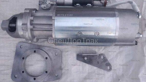 Электростартерный запуск дизеля Т-170 Б-170 ЧТЗ На тракторе вместо пускового двигателя П-23У может устанавливаться электрический стартер. При этом в обозначение марки трактора добавляется цифра 4. Например, Т-170.40 или Т-170.41. С применением электростартера 25.16.3708 мощностью 10,5 кВт устанавливаются две аккумуляторные батареи 6СТ-182ЭМ или 6СТ-190А. Конструктивные особенности трактора с электростартерным запуском Т-170 На маховике дизеля вместо зубчатого венца, с косыми зубьями установлен, зубчатый венец с прямыми зубьями. На носке коленчатого вала дизеля имеется устройство, позволяющее при регулировании вращать коленчатый вал специальной рукояткой, имеющейся в ЗИП трактора. В систему питания дизеля введен ручной топливоподкачивающий насос, предназначенный для подачи топлива из бака к топливному насосу, прокачки топлива в системе при удалении воздуха из системы и создания необходимого давления топлива перед свечой электрофакельносо устройства (ЭФУ). Для облегчения пуска дизеля пр