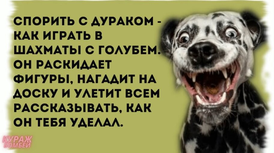 Чем умнее человек, тем быстрее ему можно доказать, что он дурак. Объяснить дураку, что он дурак — практически невозможно. Представьте, что вы оказались в компании людей, которые превосходят вас интеллектуально, лучше зарабатывают, чаще путешествуют, общаются на темы, в которых вы слабо ориентируетесь. Конечно, нет-нет да и втащите им битой по кумполу. Токсичные люди, по сути своей, проецируют собственную неуверенность, комплексы и ущербность на других. Самый глупый выбор всегда делается с самым умным видом. Это вам подтвердит любой официант, крупье, продавец-консультант или регистратор ЗАГСа. Многие люди по-доброму завидуют дуракам: для них каждый день преподносит новые чудеса, вокруг всё новое, сплошные загадки и открытия. А вы попробуйте не учить физику в школе, и вся ваша жизнь будет наполнена чудесами и волшебством. Дураки никогда не забывают, что они пришли в этот мир для великих целей: метаболизма и репродукции. Саранча — стихийное бедствие, хотя в одиночку она совсем не страшна