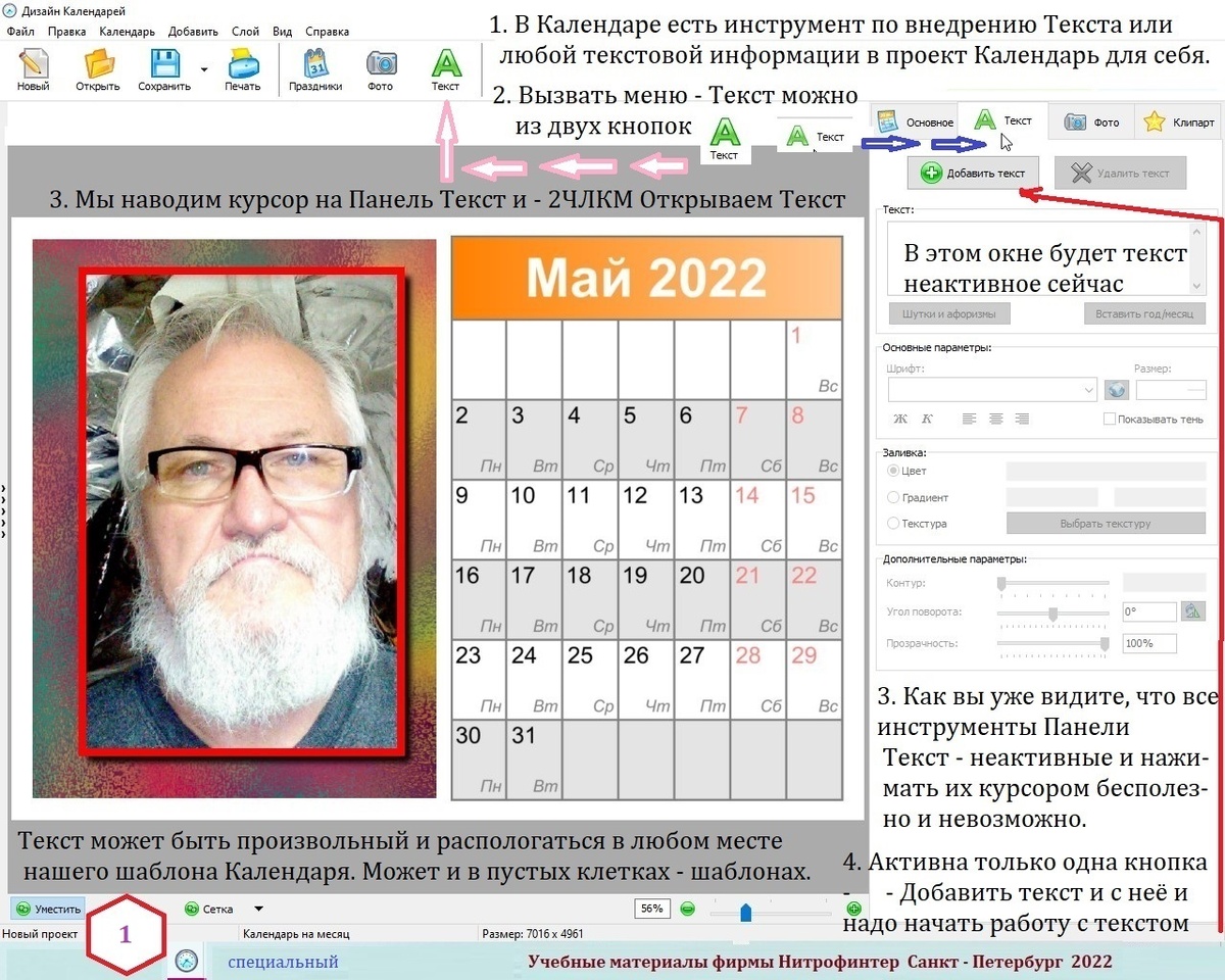 Работа в программе Дизайн Календарей. Урок о дополнительном тексте.