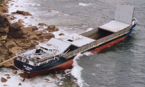 Морские бедствия могут иметь разные причины. От банального человеческого фактора, до плохих погодных условий. Однако в 2003 году произошла катастрофа, предположительно вызванная... штанами одного из членов экипажа грузового судна «Мюльхайм», которое 22 марта 2003 года врезалось в скалы в районе Лэндс-Энд в Великобритании. Грузовое судно «Мюльхайм» было построено в мае 1999 года на румынской верфи Tulcea. Судно было заказано в декабре 1997 года, а закладка киля состоялась в феврале 1998 года. Грузовое судно длиной 89,7 м и водоизмещением 2500 брт первоначально называлось «Зевс». Оно было оснащено дизельным двигателем Deutz SBV8M-628 мощностью 2040 л.с., обеспечивающим скорость 13 узлов. Экипаж состоял из 6 человек. В июле 1999 года название грузового судна было изменено на «Мюльхайм». Судно использовалось для перевозки различных видов грузов, в основном между европейскими портами. 22 марта 2003 года оно вышло из Корка, Ирландия, и взяло курс на Любек с грузом в 2200 тонн пластика из авт