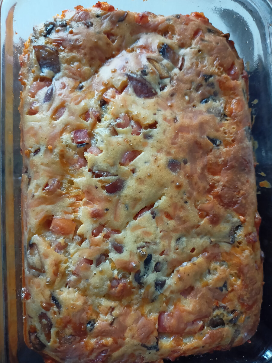 Решила из остатков еды сделать заливной пирог, получилось отличная домашняя пицца-пирог. Очень просто, быстро и вкусно