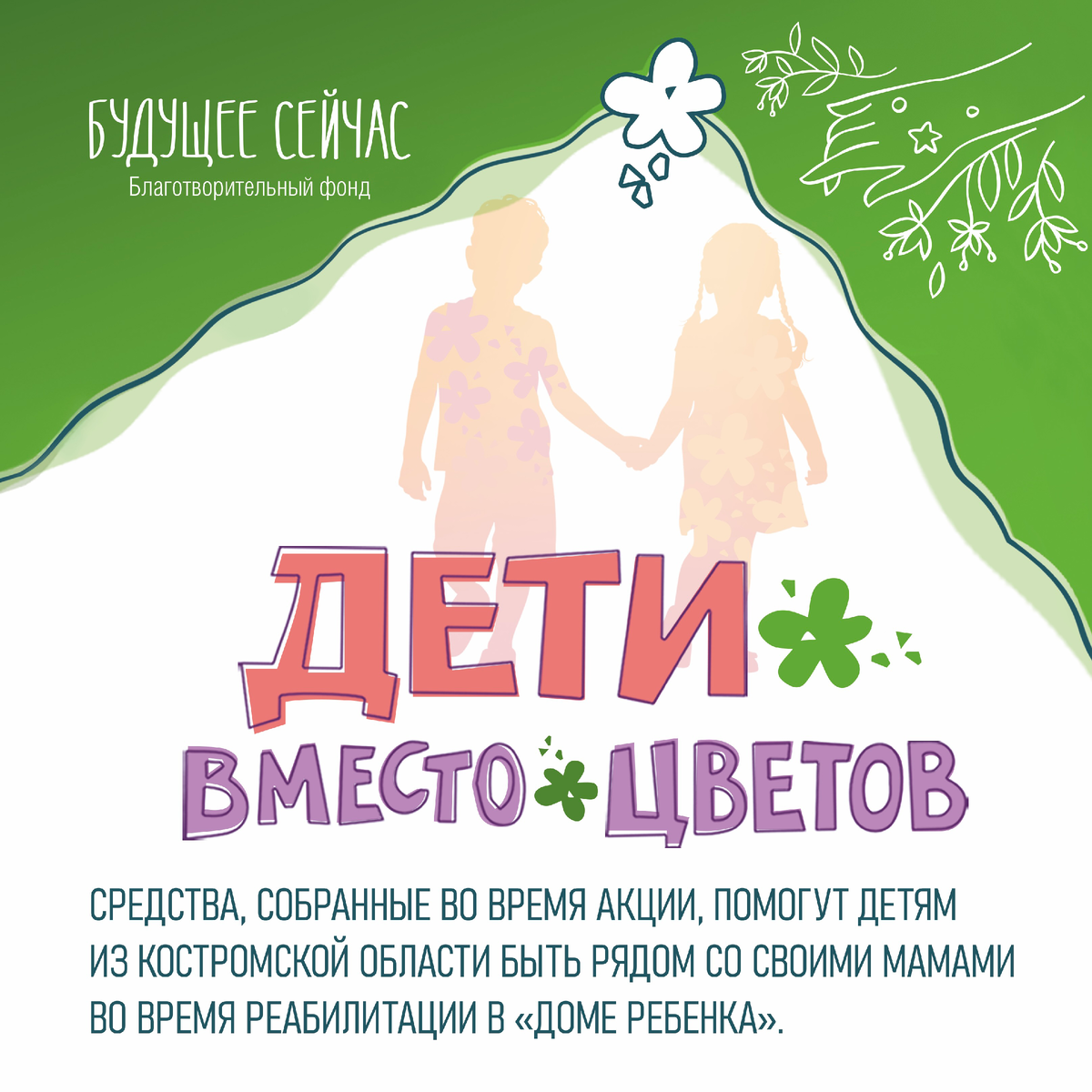 Друзья, приглашаем вас принять участие во всероссийской акции «Дети вместо цветов»! В этом году все собранные во время акции средства фонд «Будущее Сейчас» направит на аренду квартиры для семей с детьми, приехавшими на реабилитацию в «Дом ребенка» из Костромской области. «Дети вместо цветов» — это благотворительная акция, в ходе которой 1-го сентября ученики дарят учителям один букет от всего класса, а сэкономленные на покупке остальных цветов деньги передают в благотворительные фонды на помощь детям. А ещё всех участников акции ждут памятные сувениры 😌 Правила участия и форму регистрации вы можете найти на сайте фонда. #ДетиВместоЦветов