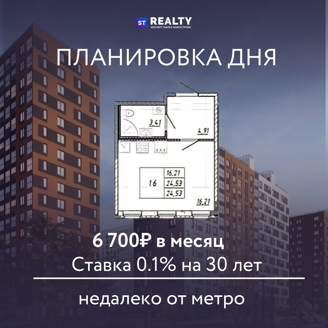Представляем вам новую рубрику - "Планировка дня". Сегодняшний пост посвящëн ЖК, который представляет собой уютное и экологичное место, где уединенность и тишина идеально сочетаются с близостью к метро и к основным транспортным развязкам. Место для счастливой жизни всего за 4 823 000₽! 🔥 Этот комплекс обеспечит вам комфортное проживание, благодаря ряду достоинств: 🟣2 детских сада и школа со стадионом 🟣Расположение на живописном берегу реки 🟣Безопасность, дворы без машин, система видеонаблюдения 🟣Транспортную доступность (выезд на КАД, станция метро, железнодорожная станция, автовокзал) Так же детские площадки, торговые центры и многое другое, где вы сможете интересно проводить досуг со своей семьёй💜 На фото представлена планировка квартиры. Расчёт по ипотеке: Ставка 0.1% на 30 лет Платеж - 6.700 рублей в месяц Чтобы узнать более подробно, пишите в директ ✍🏼