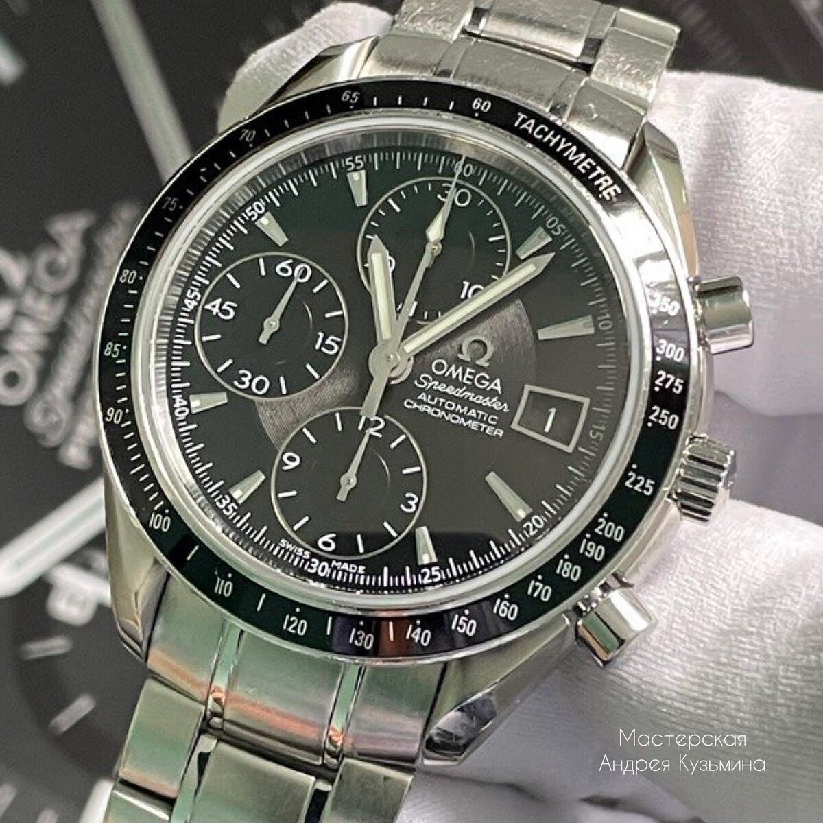 Omega Speedmaster - легендарные часы, которые побывали во всех шести лунных экспедициях😲 Корпус и браслет часов выполнены из стали. На циферблате располагается малая секундная стрелка, 30-минутный и 12-часовой счетчики, центральная стрелка хронографа. Безель с тахиметрической шкалой. Водонепроницаемость до 100 метров. Калибр OMEGA 1164. Запас хода до 44 часов. Здесь было произведено полное техническое обслуживание. Полировка не производилась. Полировка придаёт часам эстетический внешний вид, никак не влияет на работу самих часов. Поэтому, если клиент не желает делать полировку, то я не делаю. Главное, что механизм часов полностью обслужен и работает на все 100% По всем вопросам пишите мне в личные сообщения в удобном для Вас мессенджере (What’s App, VK). Оставить заявку вы можете на сайте masterkuzmin.ru