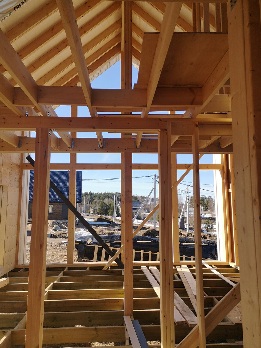 Моя строительная компания решила поделить строительство на несколько этапов: С одной стороны все было понятно. Но есть нюансы: Каркас действительно стоит. Выполнена ветрозащита, смонтирована обрешетка и отделан фасад. С кровлей тоже все понятно - она так же по ветро-влагозащите и обрешетки смонтирована. + выполнены мансардные окна. Окна (2 этап) я заказала самостоятельно в сторонней организации. Минусы: Так сложилось, что после сметы на третий этап мы и разошлись с компанией-застройщиком. По моим мироощущениям компания постаралась "отбить" те деньги, которые они не дополучили при росте цен. В новой смете я нашла завышение объемов по несколькими позициям. И самое неприятное - наценка до 40% на некоторые материалы от среднерыночной стоимости. Разбивка на этапы для меня разделилась 50/50 Плюсы Минусы В заключение хочу сказать - к качеству выполненных работ претензий у меня нет от слова совсем! Похвально то, что приехавшая на стройку другая бригада смогла высоко оценить каркас и материалы