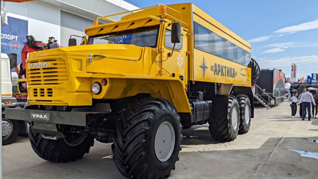 На международном форуме «Армия-2022», проходящем в эти дни в подмосковной Кубинке, прошла презентация полноприводного вахтового автобуса «Урал-425702», предназначенного для эксплуатации в Заполярье. По заверениям разработчиков новинки, она способна работать при температуре до -50 градусов. Автобус оснащён утеплённой кабиной, а также каркасно-панельным пассажирским модулем с солидным слоем теплоизоляции и с мощным автономным отопителем. Кроме того, для нормальной работы в суровом климате Крайнего Севера «Урал-425702» оснастили электрогенератором мощностью в 3 кВт и электрическим обогревом топливной системы. Габариты автобуса: длина — 10 575 мм, ширина — 2 550 мм, высота — 3 600 мм. Под капотом установлен рядный 6-цилиндровый турбодизель ЯМЗ-653 объёмом в 11,12 литра, развивающий мощность в 310 л.с. и крутящий момент в 2 000 Нм. Трансмиссией новинке служат 9-ступенчатый «автомат» и система полного привода. Кроме того, «Урал-425702» оборудован пневматической задней подвеской, широкопрофил
