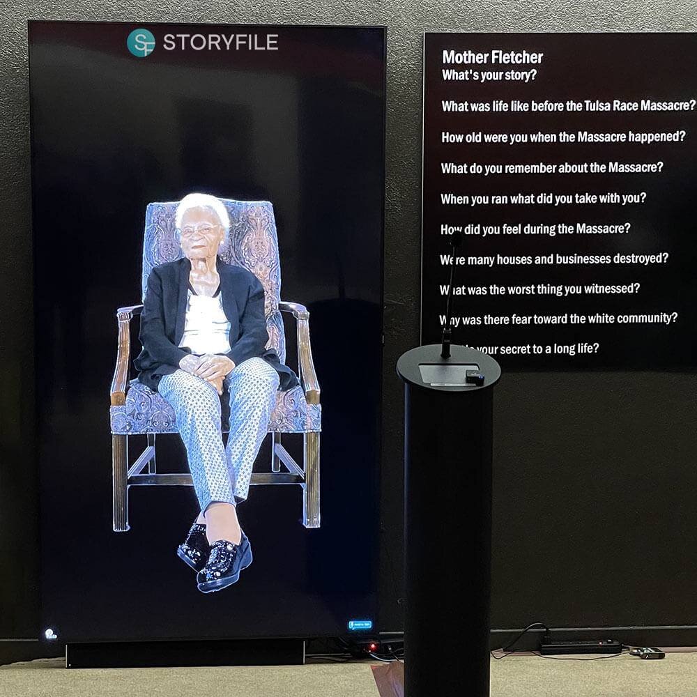 Команда проекта StoryFile снимает человека при помощи 20 камер и создаёт «цифровой клон» при жизни. Затем видео обрабатывается искусственным интеллектом, который обучается отвечать на вопросы от лица заказчика. «Цифровую копию» загружают на платформу StoryFile, где с ней можно вести диалог в онлайн режиме. Стоимость — 39,99 фунтов стерлингов (~₽3.000).