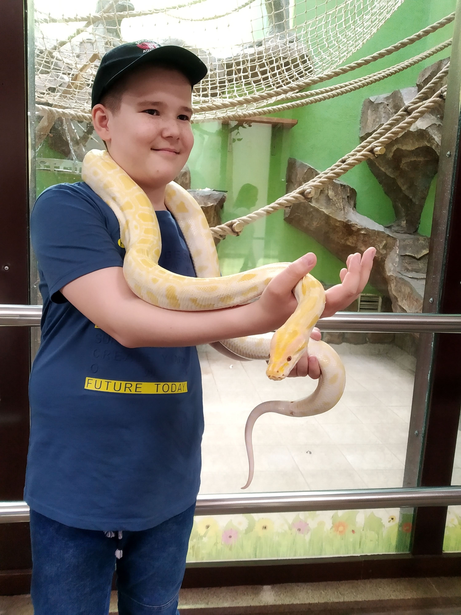 Привет! Спасибо, что читаете мои заметки на канале @Саша LAND 😊 Сегодня я хочу рассказать об ижевском зоопарке. Кстати, на фото это я. А минутой ранее выражение моего лица было таким: Нет, я не испугался 😁 Наоборот. Кое-как уговорил родителей разрешить взять в руки настоящую змею. Такая фотография стоит 100 рублей. Впрочем, давайте обо всем по порядку. Сколько стоит билет в зоопарк Удмуртии За меня заплатили 100 руб, а за родителей - 600 руб. Итого: 700 рублей за вход на троих. Оставлю здесь информацию для желающих: 📌 ВЗРОСЛЫЙ БИЛЕТ (с 18 лет) - 300 рублей