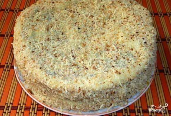 - 6. Теперь промазываем коржи кремом, также обмажем кремом торт со всех сторон. Посыпаем крошкой от коржей. Приятного аппетита!#тортбезвыпечки #торт #сладостикчаю #тортрецепт