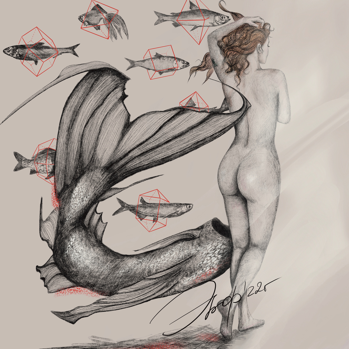 Моя первая работа из серии #калейдоскоп )) Первый шаг На что мы готовы ради своей мечты и что мы можем для этого сделать. Хорошо когда мы можем плавать, а если мы начинаем сами придумывать себе ограничения? А если вылезти из зоны комфорта? Чем мы готовы рискнуть ради мечты, без гарантированного хорошего окончания? и почему становясь старше мы чаще боимся? а может перестаем хотеть? Где наша детская непосредственность? Переродиться, отказавшись от привычной жизни и привычного окружения... мы идем на встречу своей мечте, делая не простые для нас шаги, а может замерла и задумалась.. Но приближаясь к тому о чем так долго грезили, даже если что-то пойдет не так - это все равно лучше, чем в стоячей воде и без желаний, без чувств. Рыбы замерли и только потому, что они так сами решили. Девушка сбросив хвост и обретая ноги - идет на свет. Она не то, что решила поплыть в отличии от своего окружения - она пошла. Что на ищет? - вот тут можно вернуться к работе скорпиона. Ну а как все произойдет -