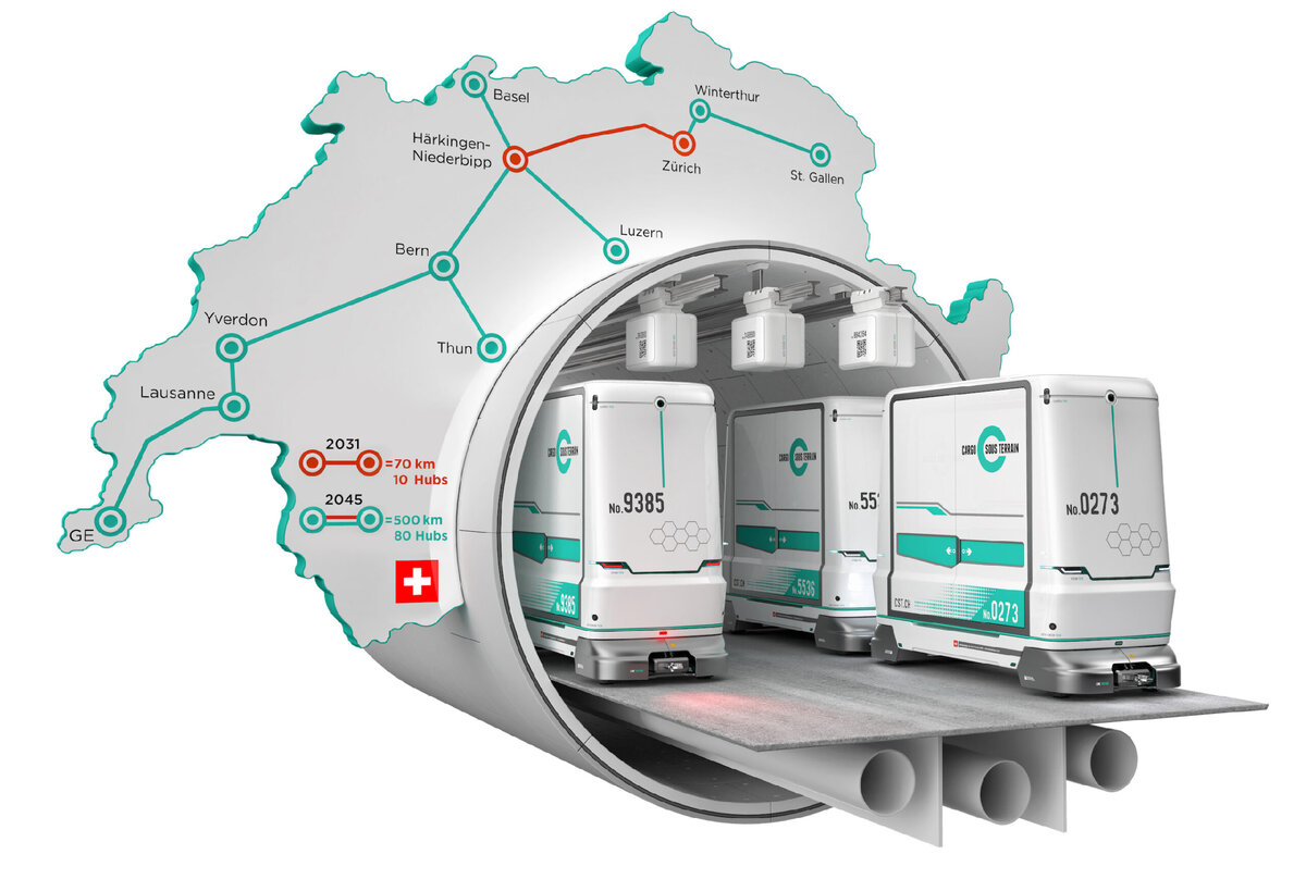В августе начался первый этап работ по строительству автоматизированной сети грузовых туннелей Sous Terrain (CST) или „Underground Cargo”, по которым в специальных капсулах будут перевозиться грузы. Этот этап включает анализ местоположения для первых 10 узлов на 70-километровом участке между Цюрихом и главным логистическим узлом в Херкингене/Нидербиппе. В настоящее время проводятся геологические исследования, транспортный анализ и внедрение проекта в окружающую среду и ландшафт.