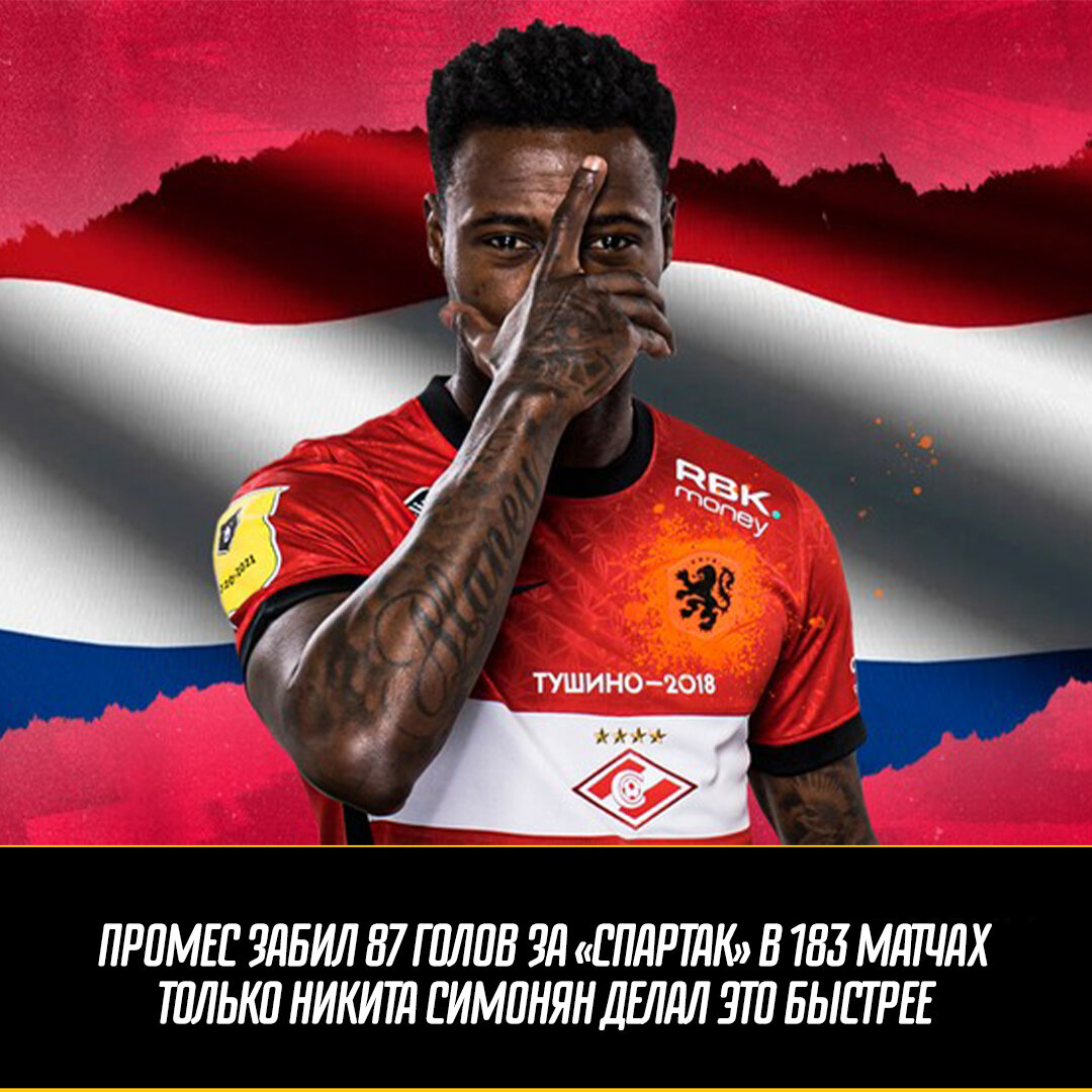 👑 Квинси Промес вошел в историю «Спартака» по забитым мячам. Дубль в ворота «Сочи» позволил нидерландцу выйти на 9-е место в списке лучших бомбардиров красно-белых за всю историю клуба.
