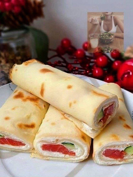 Предлагаю вкуснейшие рецепты для полезного питания Для блинов: 🥚 яйцо - 1 шт 🥛 молоко - 100 мл 🥄 мука рисовая - 2-3 ст ложки Для начинки (у меня): 🍣 красная рыба 🥒 огурец 🧀 творожный сыр Приготовление: Смешать яйцо, молоко и постепенно добавлять муку, консистенция должна быть достаточно жидкой. По вкусу можно добавить соль. Выпекать блинчики с двух сторон до готовности на сковороде с а/п покрытием. Рыбу и огурец нарезать длинными ломтиками. Блинчики с одной стороны смазать творожным сыром, внутрь положить ломтики рыбы и огурца, свернуть блинчики а рулеты. Рулетики из блинчиков можно разрезать на 2-3 части, и можно подавать к столу. Хороший завтрак, для всей семьи!