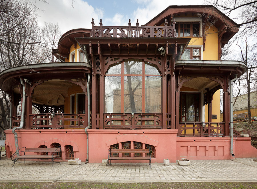 В сегодняшнем посте мы хотим осветить еще один яркий пример модерна – особняк купца Носова. Жилой дом построен в 1903 году по проекту архитектора Льва Николаевича Кекушева. Здание является объектом культурного наследия федерального значения. Главный акцент в архитектуре здания сделан на его главном фасаде – открытой деревянной веранде, арки, ограждения и балки которой украшены резным декором. Внутренний интерьер особняка также наполнен деревянными изделиями. Здесь преобладает отделка разными сортами дуба. Этим материалом полностью оформлены прихожая, нижние части стен холла, кабинета, двухмаршевая лестница. Особое внимание следует обратить на окна здания. По решению архитектора каждое из них сделано непохожим друг на друга. Поэтому в фасаде здания мы можем наблюдать и подковообразные, и квадратные, и узкие с круглыми арочными завершениями, и вытянутые вертикально окна. Удивительно то, что все рамы оконных и дверных обрамлений, переплеты окон, сами двери, деревянные панели стен, полот