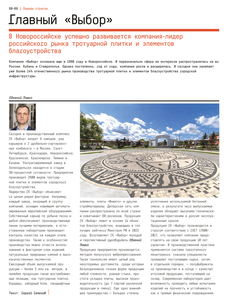 В 20-м юбилейном альманахе Отраслевого журнала «Вестник» - информационного партнера Минстроя РФ, Росстройконтроля и Союза архитекторов России, вышла статья о компании «Выбор» в разделе «Лидеры отрасли».