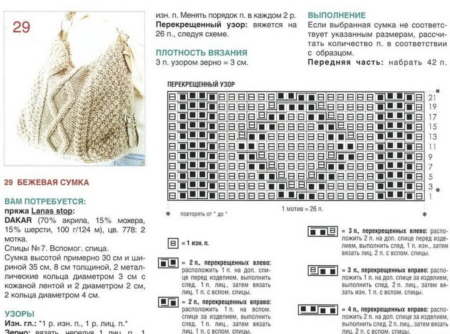 Невестка недавно идею предложила: разобрать вязание сумок. Я привыкла, что большинство сумок вяжется крючком и форму держат отлично и мотивы подходящие. Но решила одним глазком взглянуть и нашла столько интересного... А вот эта прямо для меня, года три лежит ленточная пряжа, покупала под определенный проект, но ошиблась с количеством. А тут у вязальщицы может появиться вязаный клатч, да еще из дорогой итальянской пряжи. Клатч на фото связан из трикотажной пряжи. В данном случае можно дать простор своей фантазии. Для ребенка его можно сделать из Ализе Пуффи, Там аналогичная плетенка есть. Узор выполняется не сложно, запутаться в вязании петелек практически невозможно. Убедитесь, посмотрев схему вязания сумочки ниже на картинке. Чтобы разобраться в этих единичках, смотрите пояснения, что означают эти цифры и дроби: "– "– изнаночные петельки 1\1 – начните провязывание второй петли с левой спицы за заднюю часть, после провязывает первую за переднюю часть Лиц.П., а потом сбрас