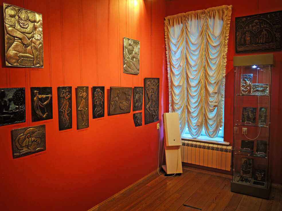Продолжаю виртуальную экскурсию по второй выставке этого года в самарском музее Детская картинная галерея. Она работала в апреле-июне. Называлась «Про Куйбышев. С любовью» и рассказывала о городской жизни в период 1960-80-х годов. Предыдущие части можно посмотреть по ссылкам ниже. В следующей комнате на нашем пути представлена коллекция чеканки. В 1970-80-х годах в Советском Союзе этот вид декоративного творчества был очень популярен. Многие и сами занимались изготовлением таких изделий. Подобные своеобразные картины можно было увидеть практически в каждом доме или квартире. На мой взгляд, этот вид искусства - довольно уникальное явление. Ведь это не совсем то же самое, что уходящая на поколения назад техника украшения посуды. Такого массового производства именно картин в подобной технике, пожалуй, не было ни до этого, ни, совершенно точно, после. Авторы многих работ, представленных на выставке, неизвестны. Между тем, некоторые изделия смело можно назвать настоящими шедеврами в своём н