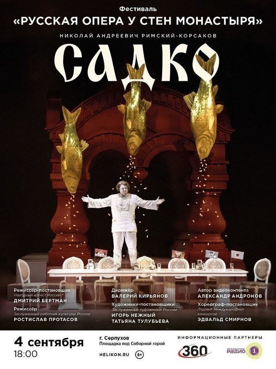 Одно из самых долгожданных культурных событий состоится в первое воскресенье осени Под Соборной горой в Серпухове четвёртого сентября любители классической музыки смогут увидеть спектакль «Садко» Н. А. Римского-Корсакова Московского музыкального театра "Геликон-опера" в постановке Дмитрия Бертмана. Культурное событие произойдёт в рамках проекта «Русская опера у стен монастыря». Для Серпухова это юбилейный 5-й сезон. Глава городского округа Сергей Никитенко выразил благодарность организаторам мероприятия: - Символично, что это масштабное яркое и красивое действие развернется в историческом центре Серпухова, у стен наших древних храмов. Благодарю Министерство культуры за выбор нашего округа для проведения такого крупного мероприятия, участниками которого, в этом году, является Серпухов и Сергиев-Посад, - написал глава в своих соцсетях. Также он отметил, что постановка является образцом истинной русской культуры и основана на древних былинах. Начало в 18-00. Вход на мероприятие бесплатный