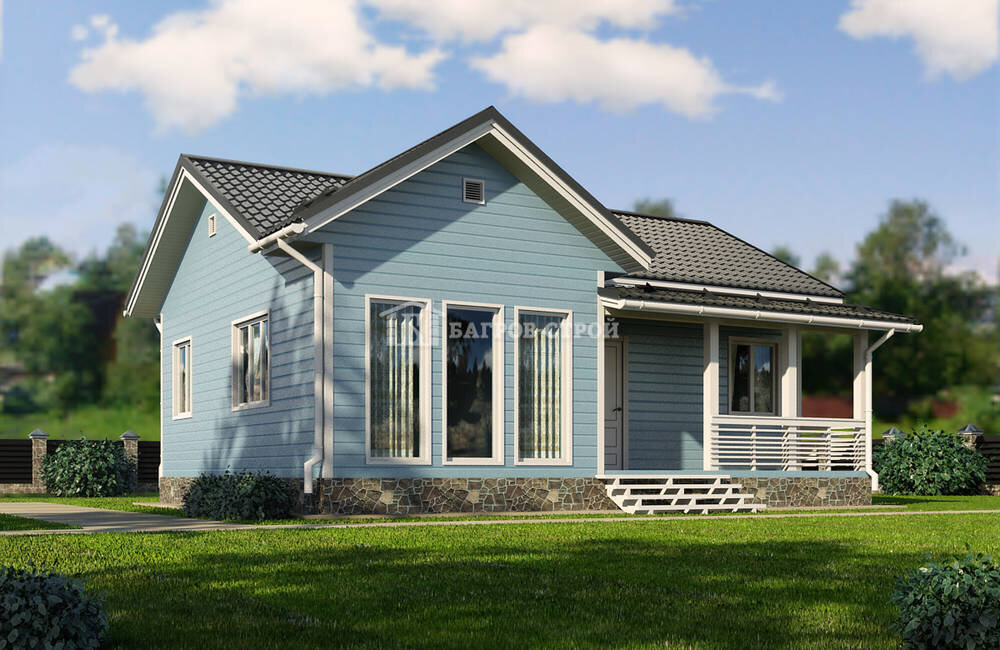 Светогор – одноэтажный дом из бруса, с террасой, общие размеры – 7,5х9м. Планировкой предусмотрено 7 помещения в доме, санузел, и терраса 1,5х5м, с ограждением перилами и балясинами, при входе устанавливаются ступени. • Площадь: 60 м2