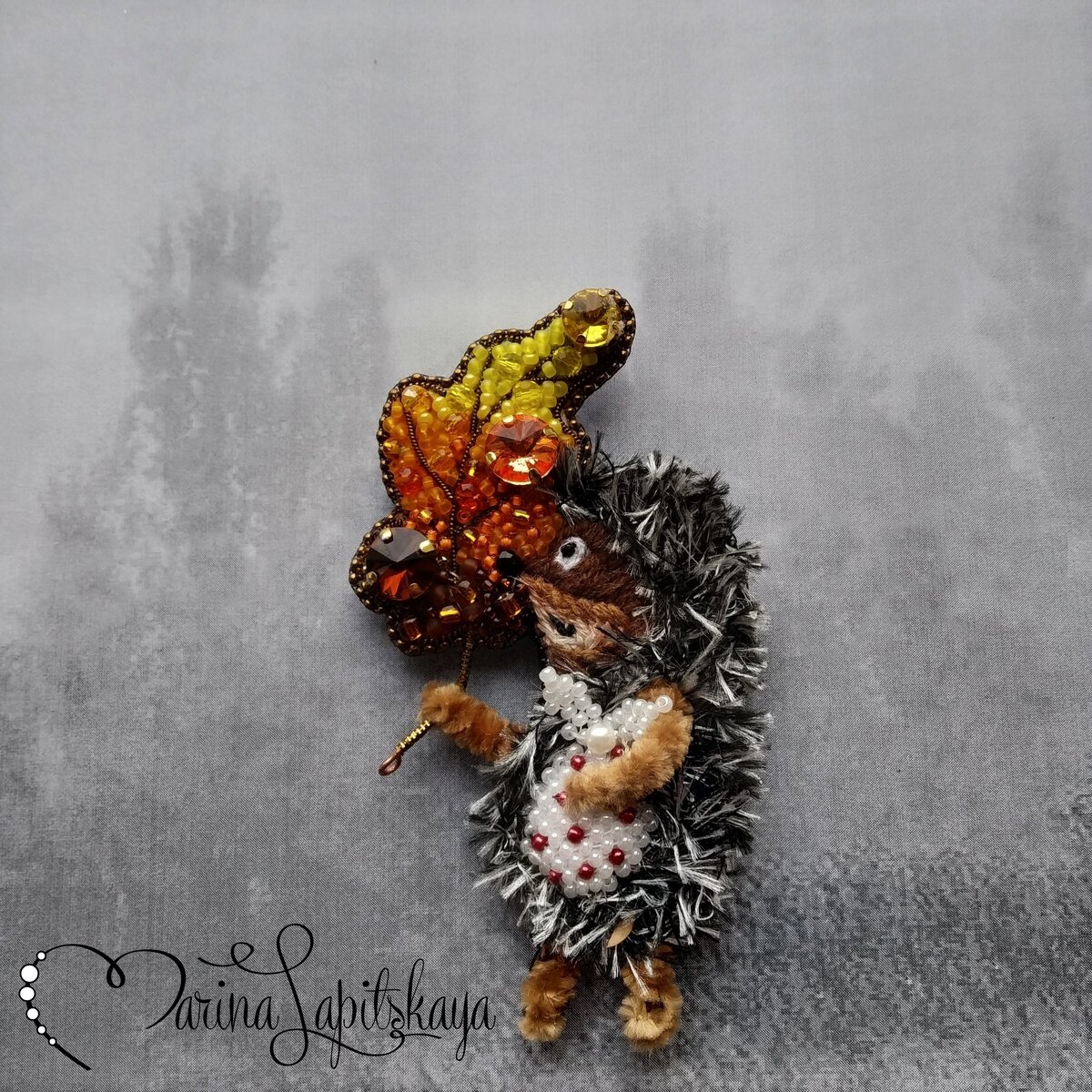 Завтра уже осень и как тут не вспомнить ёжика с медвежонком из книги Сергея Козлова? — Я очень люблю осенние пасмурные дни, — сказал Ёжик. — Солнышко тускло светит, и так туманно- туманно... — Спокойно, — сказал Медвежонок. — Ага. Будто все остановилось и стоит. © Сергей Козлов В мастер-классе у меня ежик без листика, но его легко добавить, и тогда, брошь получится совершенно осенней).