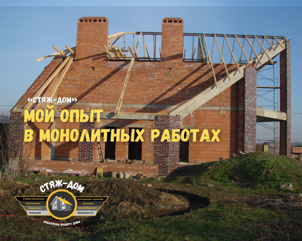 С 2004 по 2007 год (в тот период мне было 19-21 год) я специализировался на кровельных работах. С 2008-го (мне уже исполнилось 22 года) начал самостоятельно брать заказы именно на монолит. Как-то к моему отцу обратился заказчик, который хотел возвести дом сложной формы. Отец в тот период уже работал дальнобойщиком, и делегировал заказ мне. На объектах я работал со своим подсобником Александром. Мы взялись за этот заказ, ведь тр