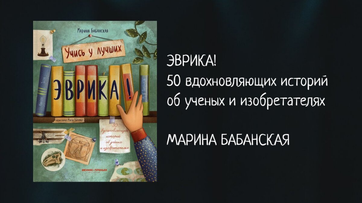 На этот раз мне в руки попалась книга Марины Бабанской «Эврика! 50 вдохновляющих историй об ученых и изобретателях». Книгу нашла в библиотеке среди новых поступлений, заинтересовавшись оформлением обложки.
