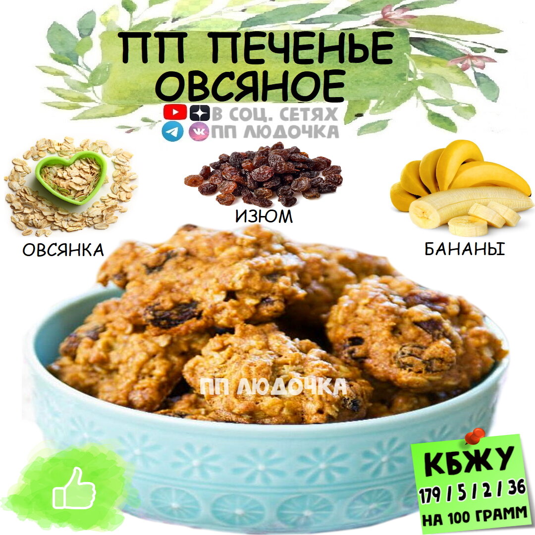 Бесконечное спасибо за лайки и подписки 💚😘 Разнообразить вкус печенья можно, включая в него каждый раз новые ингредиенты: творог, сухофрукты, орехи, вяленые ягоды, кокосовую стружку, яблоки, кунжут 🤤 Помним про пряности: ваниль, корицу, гвоздику. Перед подачей печеньки можно остудить и они станут хрустящими 😌👌🏻 📝 КБЖУ на 100 г. = 179 / 5 / 2 / 36 ⭐️ Сложность (1 из 5) ⏰ Время приготовления: 35 минут ✅ ИНГРЕДИЕНТЫ: 🍌 Банан - 3 шт. 🍌 Овсянка - 2 стакана (150-200 грамм) 🍌Изюм или любые сухофрукты - по вкусу 🍌 Кэроб и сахзам - по вкусу и желанию ✅ ПРИГОТОВЛЕНИЕ: Разминаем бананы до состояния пюре-кашицы. Добавляем овсяные хлопья, изюм, кэроб (если есть) и хорошо размешиваем. Формируем наши печенки, но они не должны быть толстыми, иначе не пропекутся. Отправляем в духовку на 25-30 мин. при 180 градусах.