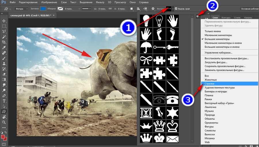 Чтобы не создавать для каждой из десятков оставшихся фигур собственный инструмент, разработчики объединили их здесь. Все элементы панели параметров вам уже знакомы, кроме самого главного — кнопки Фигура, щелчок на которой открывает окно выбора фигур.