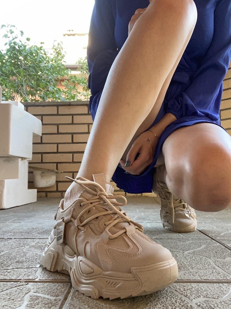 Сразу как получила я их померила. Кроссовки сидят хорошо и в них очень комфортно. Очень хорошо смотрятся и с штанами и с платьями, но я ношу их в основном с платьями, штаны в принципе редко ношу.