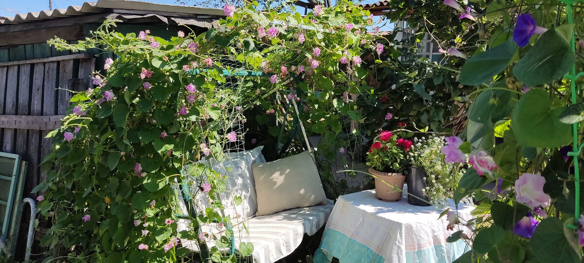 Что для вас дача? Просто огород, возделывание которого - суровая необходимость? Или место, где работаешь физически, но отдыхаешь душой? Тут недавно, на Дзене, прочитала интересную статью у коллеги по садово-огородного тематике, о том, какие у неё были мечты, связанные со своим домом и участком, и какие из них осуществились, а какие нет. Среди тех, что не сбылись - садовые качели. Я даже написала комментарий - в том духе, что качели - это непременный атрибут счастливой дачной жизни. И если хочется - не откладывайте. Даже если полно работы, лично я, нахожу минуту, чтобы присесть на качели с чашкой чая или любимой книжкой. Качели - мой счастливый талисман. Муж подарил мне их на день рождения в ту весну, когда мы, купили дом с огородом в городе. Десять лет назад. Качели самые простые, самый дешёвый китайский вариант. Тогда другие варианты нам были недоступны по цене. За эти годы муж те качели практически сделал заново. Укрепил деревом сидение, сделал новые крепления. Отдыхая на каче