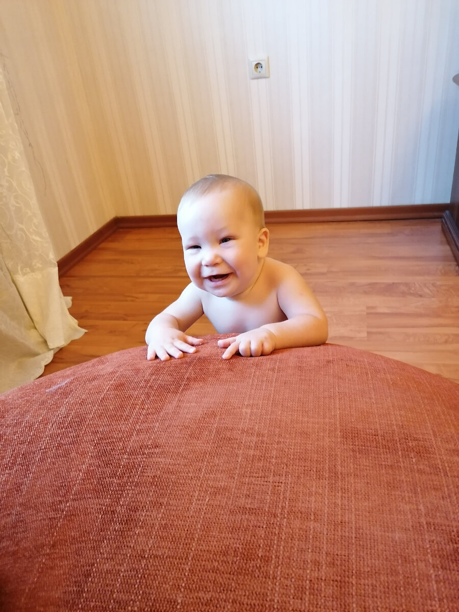 Мой маленький медвежонок Майкл. Ему 8 месяцев. Он веселый и шумный, издающий огромное количество разных звуков ребенок. Малыш очень любопытный, всюду сующий свой маленький нос. Любит рвать обои и засовывать в рот разные бумажки. Очень неравнодушен к резиновым тапкам. Дружит с нашей кошкой. Не любит сидеть в кроватке и когда кто-то выходит из комнаты.