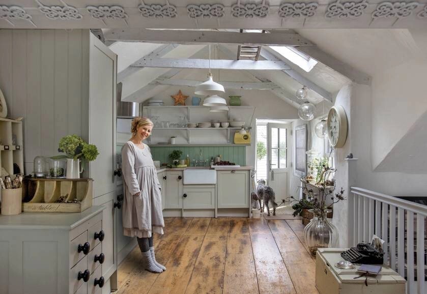 Дом вверх ногами! Что за ерунда, скажете вы. Разве так было можно? Можно!Можно сделать как угодно! Например, как в этом доме! Его хозяйка Джеки все перевернула, она перенесла гостиную, столовую, кухню с первого этажа дома на второй! Всем привет! Здравствуйте, дорогие читатели! Для чего же? Ведь теперь громкая, общественная зона находится вверху, а тихая и уединенная внизу? Хозяйка не могла представить себе жизнь прямо на берегу моря, постоянно слышать его шум и не иметь возможности на блюдать за ним из окон собственного дома. 350-летний дом в деревенском стиле В этом доме живет Джеки Гарретт - декоратор интерьеров, она переехала сюда из степенного викторианского Дербишира, где у нее была уютная, большая вилла. Но элегантное графство не смогло сравниться с этой туманной, продуваемой всеми ветрами земель кельтских эльфов и фей. Джеки теперь охотно делиться доброй жменю этой магии. Джеки рассказывает, что этот дом как будто бы ждал ее, она это почувствовала. Дом словно был специально сдел