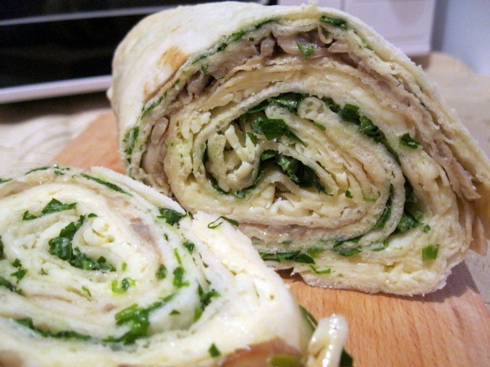 Есть несколько традиционных продуктов, изрядно приправим их креативной мыслью и приготовим настоящий кулинарный шедевр. У нас, их называют рулетиками, зарубежные же кулинары величают флюгером из лаваша. Так или иначе, сегодня мы попробуем приготовить аппетитные флюгеры с грибами и сыром. Блюдо диетическое и подходит для правильного питания, в одной порции содержится менее 5 г. углеводов. Ингредиенты флюгеров из лаваша: Приготовление флюгеров из лаваша: Лаваш накрыть слегка влажными кухонными салфетками, отложить минут на 15 в сторонку. Это особенно важно для изделия, которое слегка подсохло. Лаваш для этого блюда должен быть мягким, чтобы в него можно было легко завернуть начинку. Грибы хорошенько промыть. Если это шампиньоны, можно даже удалить верхнюю кожицу. Отделить шляпки от ножек, отварить в слегка подсоленной воде. Охладить. В небольшой миске смешать при помощи вилки сливочный сыр, сметану, чеснок и горчицу, а также мелко нарезанные грибные ножки. Должна получиться однородная ма